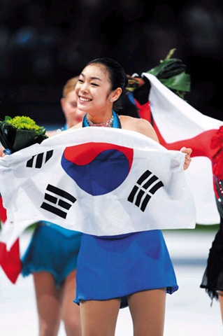 My sense is that if Korea really wants to be taken by the rest of the world as a serious, perhaps even leading, member of the G20, this sort of nationalism will need to fade. Like much of East Asia, Korea is torn between a deeply held nationalist narrative of its uniqueness (frequently drifting into racial blood-and-soil narratives of the minjok), and the desire to be cosmopolitan and open to world of globalization (‘Global Korea‘). (China too has the struggle, between the CCP’s growing racialization of Han ethnicity, and the need for Walmart and more FDI.) Yuna Kim embodies both of these trends, as she is both instrumentalized for Korean national purposes (carrying the flag everywhere, eg), yet also reasonbly fluent in English. It is not clear to me which way Koreans want to go.